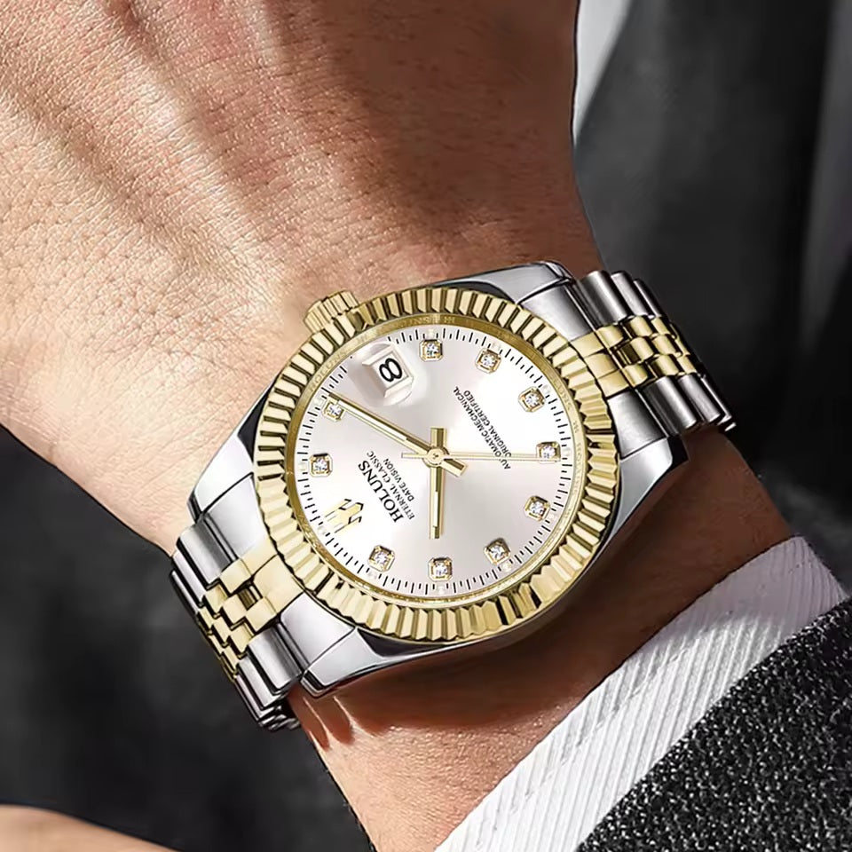 Es una pieza diseñada para quienes valoran la elegancia clásica, el acabado impecable y la presencia que solo un accesorio bien construido puede ofrecer. Con un diseño inspirado en relojería de lujo, este reloj se convierte en el complemento perfecto para elevar cualquier outfit, ya sea formal o casual.
